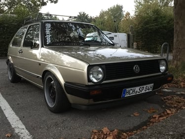 Aufgrund von Schule, Ausbildung und Studium kam ein günstiger PKW (zur damaligen Zeit als Youngtimer) in die Familie. Der VW Golf2 3-Türer - 1.6L PN von 1990 mit 3Gang-Automatik in Kirschrot war ein sehr günstiges, zuverlässiges und robustes Auto. Jahrelang hat er anstandslos Kilometer abgespult und musste lediglich mit leichten Reparaturen, Wartungen und leichten Instandhaltungen umsorgt werden. Dieser wurde später durch einen Vorfacelift VW Golf2 1.6L als 3-Türer von 1984 ersetzt, welcher durch uns zusätzlich das H-Kennzeichen erhalten hat.