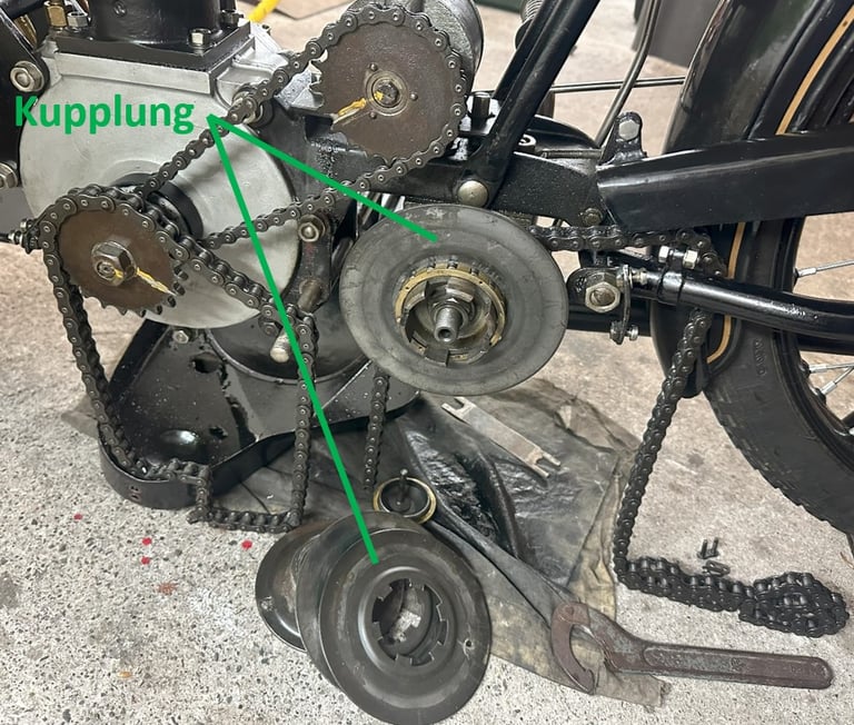 Der Ausbau und die Überholung der Kupplung gestaltet sich relativ einfach und kann am Motorrad erfolgen. Nach dem Entfernen der Kettenabdeckung und dem Abnehmen der Primärkette zum Motor kann die Kupplung relativ schnell zerlegt werden.