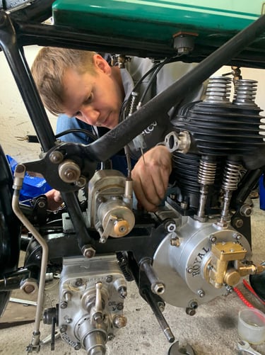 Aufgrund der überschaubaren Technik kann die Maschine in wenigen Stunden betriebsbereit gemacht werden. Steuerzeiten für die Zündung einstellen. Leitungen für Betriebsstoffe anschließen. Die Zündkerze montieren und das einzige Kabel am Motorrad vom Magnetzünder zur Zündkerze anschließen.