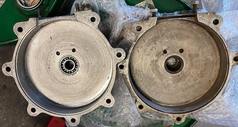 Die Motorgehäuse wurden komplett zerlegt und gereinigt. Der Zustand war gut und die Schleifspuren ergaben keine Beeinträchtigung für die Funktionalität. Da die Probleme frühzeitig entdeckt wurden, begrenzte sich der Schaden auf die Kurbelwelle. Auch die Ölpumpe musste gereinigt und überholt werden.